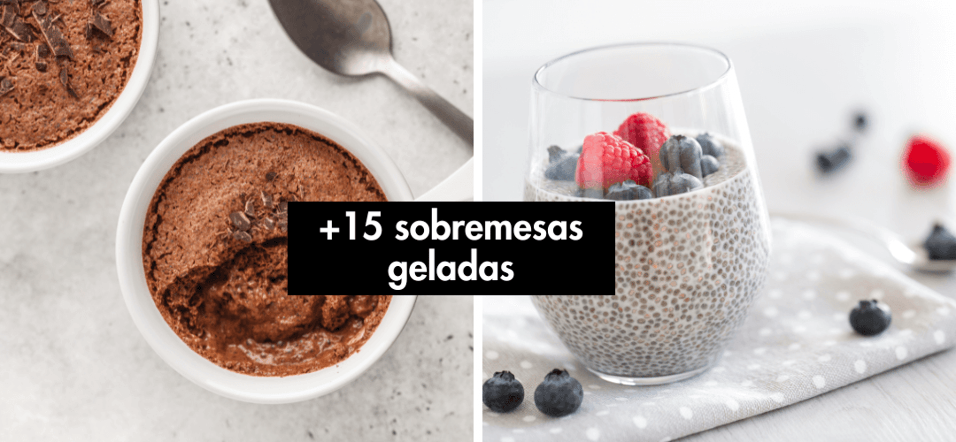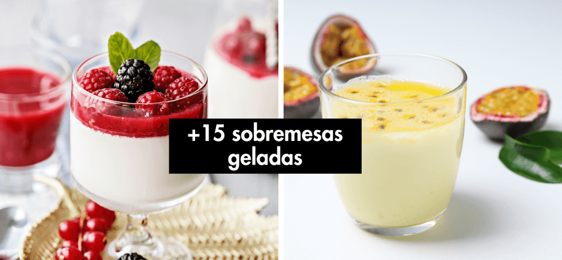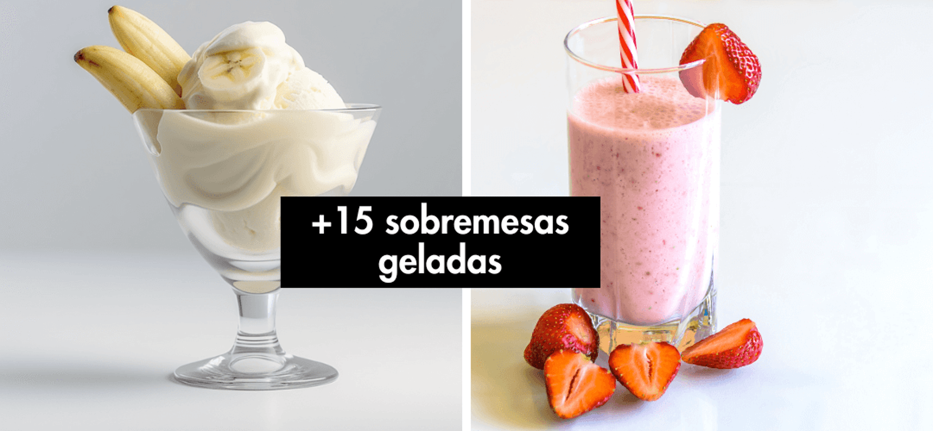 E para um MENU COMPLETO, preparamos mais de 15 receitas de SOBREMESAS GELADAS, todas pra comer SEM CULPA